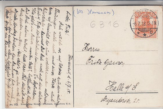 Weida in Thüringen Cafe Museum Bahnpoststempel 1910