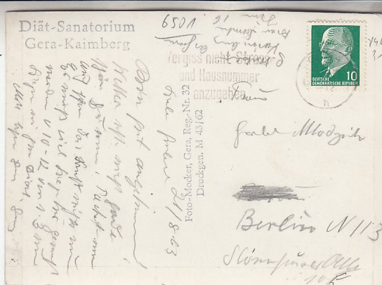 Gera Thüringen Stadtteil Kaimberg Diät-Sanatorium Foto Karte 1962