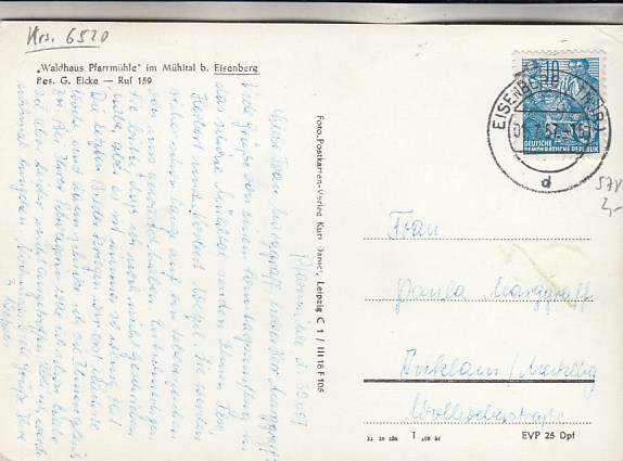 Mühltal Waldhaus Pfarmühle bei Eisenberg in Thüringen 1957