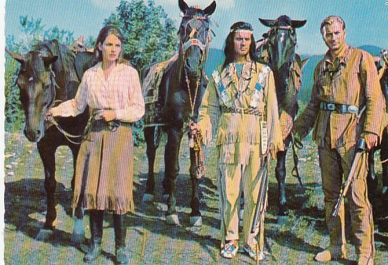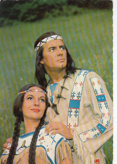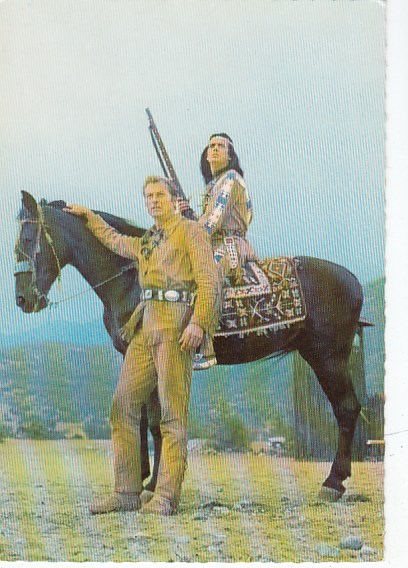 Cowboy & Indianer Karl May Postkarte Filme Schauspieler Winnetou Pierre Brice Lex BarkerKarin Do