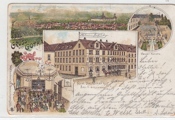 Gotha in Thüringen Hotel Deutscher Hof Litho Ansichtskarte von 1901