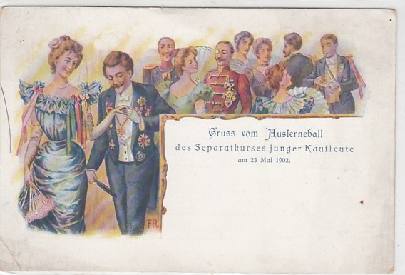 Handwerk Berufe Auslerneball Separatkurses junger Kaufleute Litho ca 1900