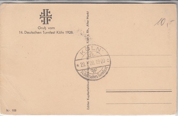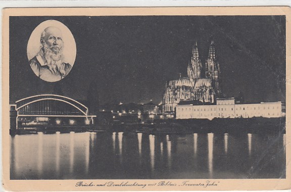 Sport Turnvater Jahn Köln am Rhein bei Nacht mit Beleuchtung Turnfest 1928