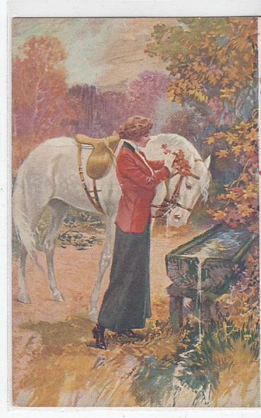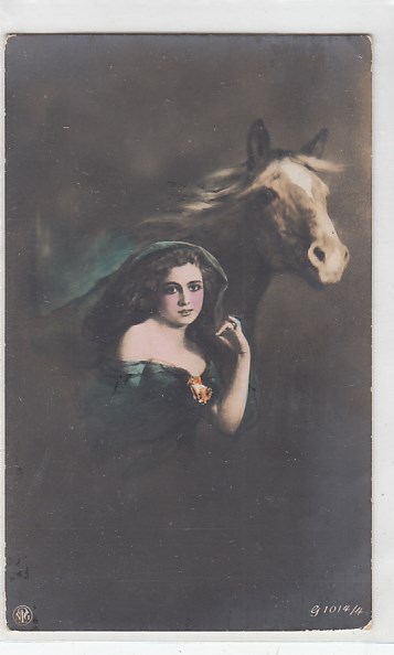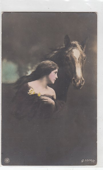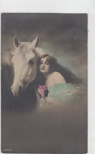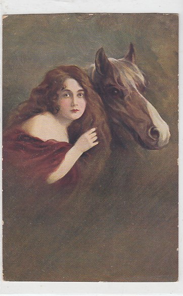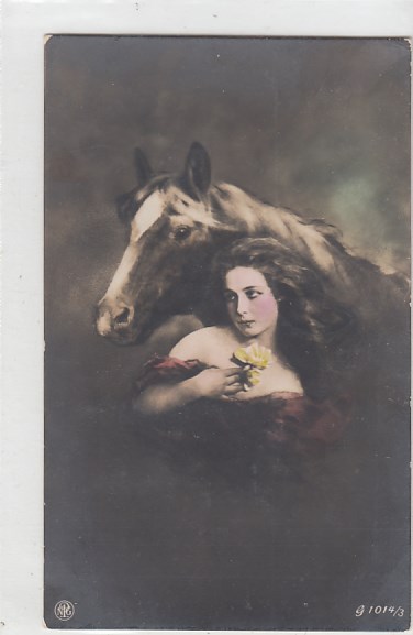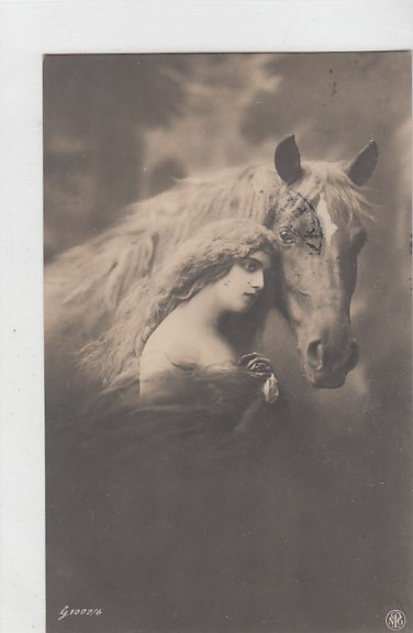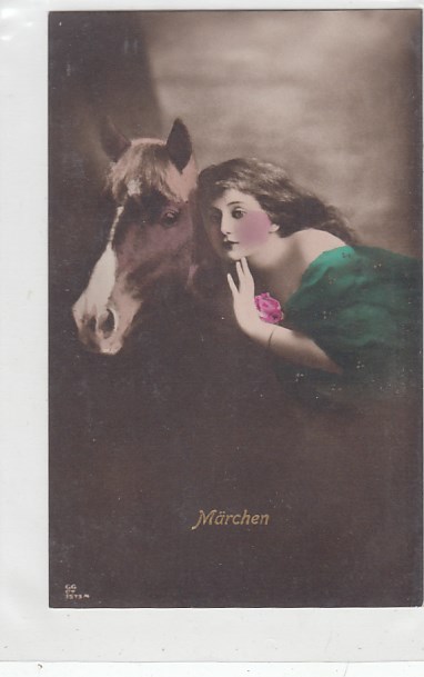 alte Ansichtskarten Bilder Tiere Pferde und Frauen sage