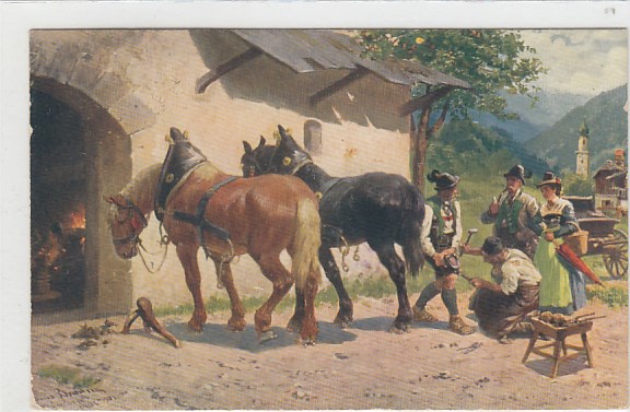 alte Ansichtskarten Bilder Tiere Pferde Hammerschmiede 1917