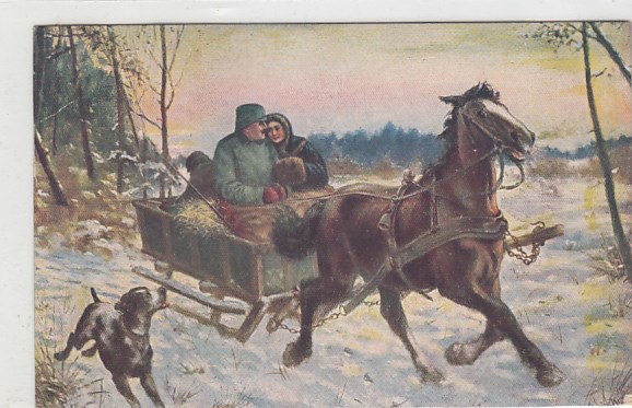 alte Ansichtskarten Bilder Tiere Pferde Winter Schlitten Hunde