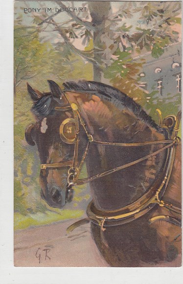 alte Ansichtskarten Bilder Tiere Pferde Ponny im Dogcart Prägekarte 1906