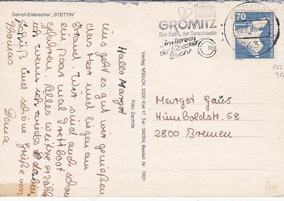 Urlauberschiffe Kreuzfahrten Bremen Schiffspoststempel 1961
