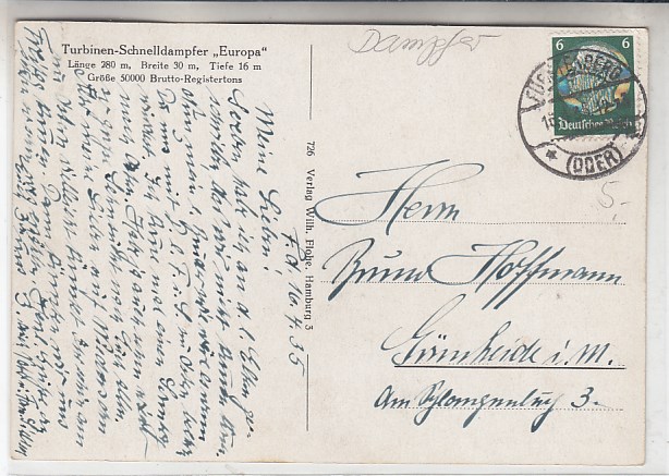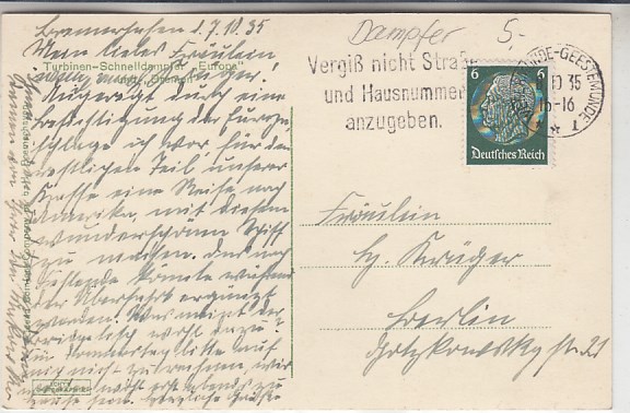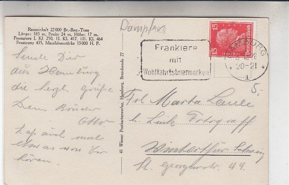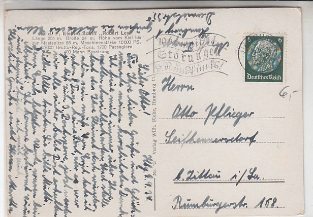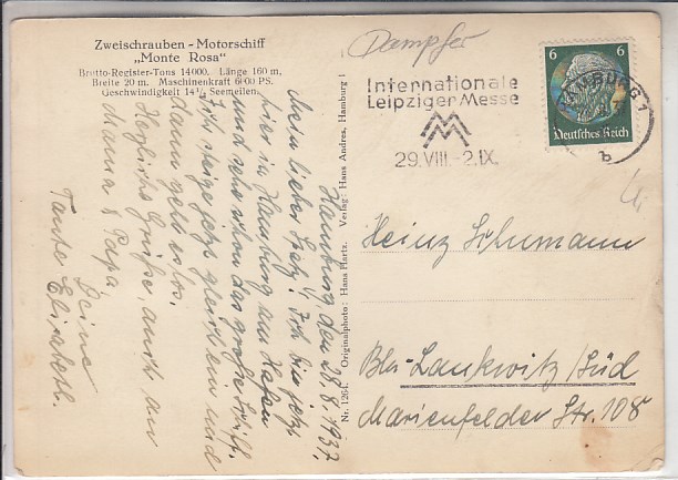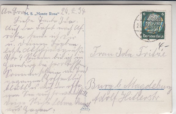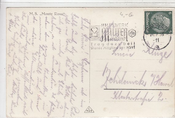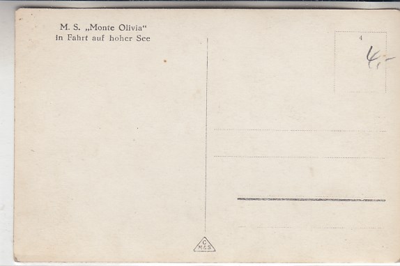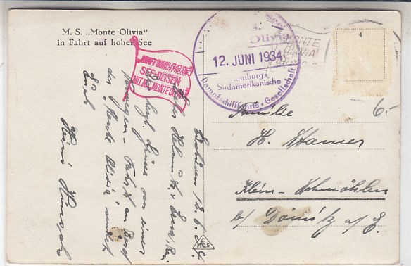Ozeandampfer Monte Olivia 1934 KdF Schiffspoststempel