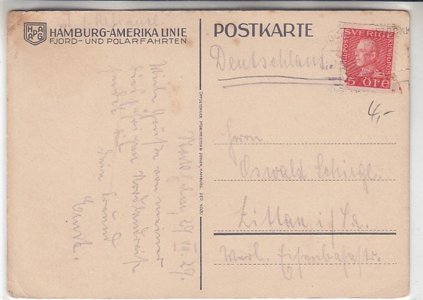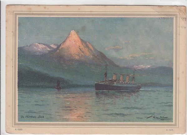 Ozeandampfer Künstlerkarte Willy Stöwer Fjord Polarfahrt Norwegen