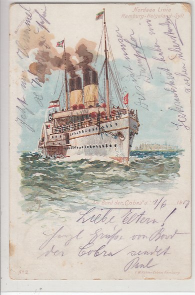 Ozeandampfer Fährschiffe Cobra Helgoland Sylt Litho Raddampfer 1903
