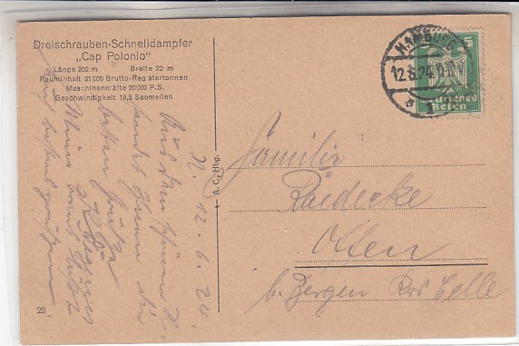 Ozeandampfer Kaiserin Auguste Viktoria 1922