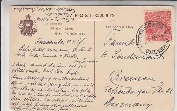 Ozeandampfer S.S. Orontes Orient Line Australien