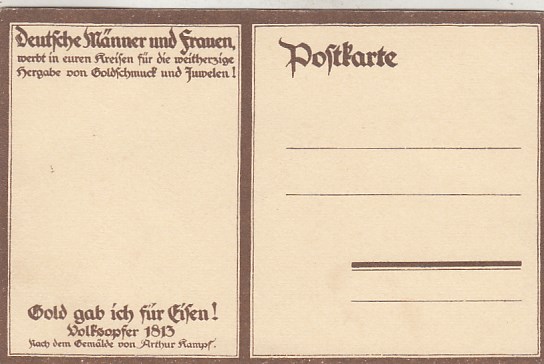 Militär vor 1914 Volksopfer 1813 nach Gemälde von Artuhr Kampf Gold gab ich für Eisen