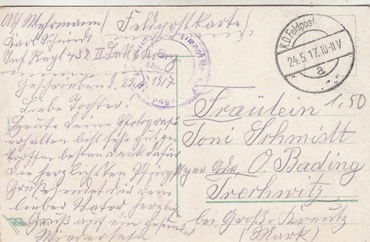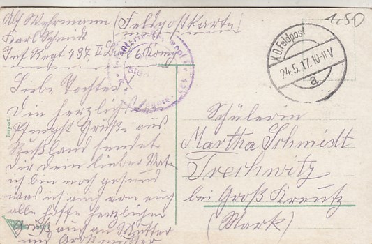Militär 1.WK Soldaten Feldpoststempel Gera