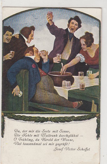 alte Künstlerkarten Alkohol Sprüche Josef Victor Scheffel