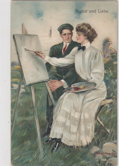 alte Künstlerkarten signiert F.Underberg Maler Frauen Liebe 1917