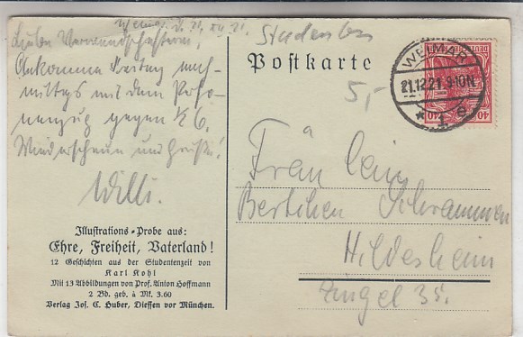 Studenten Bier Alkohol Künstlerkarte Ehre Freiheit Vaterland 1921 Weimar