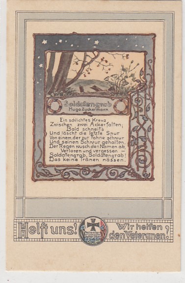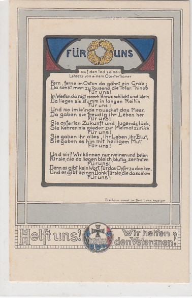 Liedkarten Musik vor 1945 Patriotisch 1.WK Wohlfarts-Karte Für und