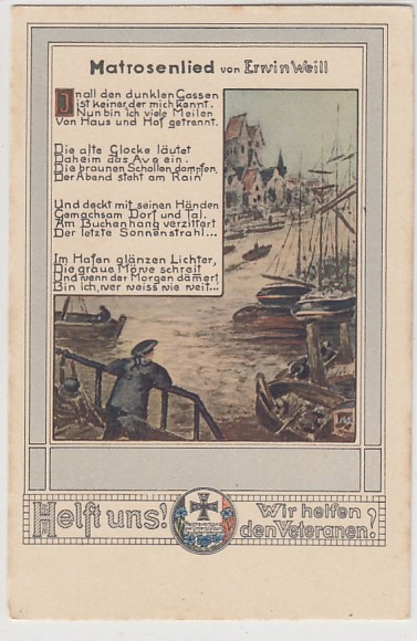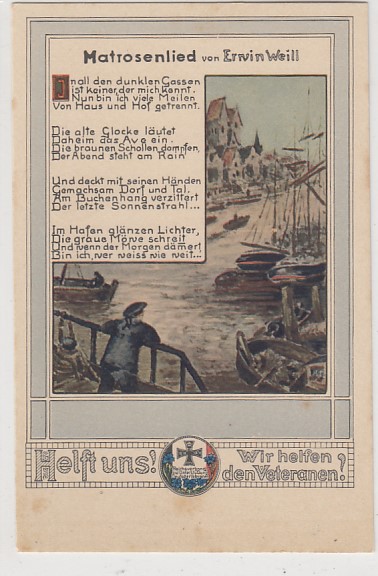 Liedkarten Musik vor 1945 Patriotisch 1.WK Wohlfarts-Karte Matrosenlied von Erwin Weill