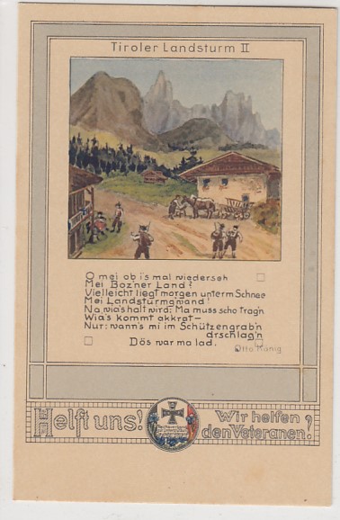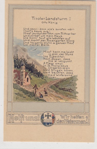 Liedkarten Musik vor 1945 Patriotisch 1.WK Wohlfarts-Karte Tiroler Landsturm