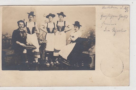 Musik Trachten Foto Karte Stempel Löbau 1914