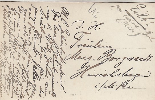 Foto Karte deutsche Orte nicht bestimmbar Bahnpoststempel Berlin-Magdeburg 1915