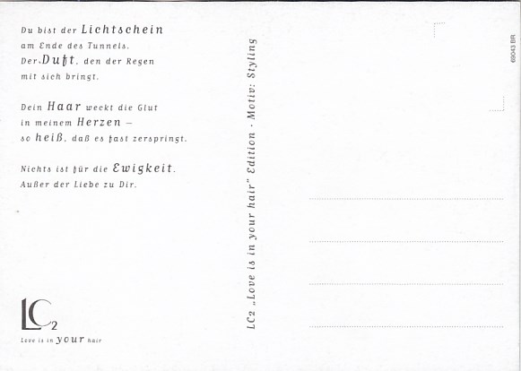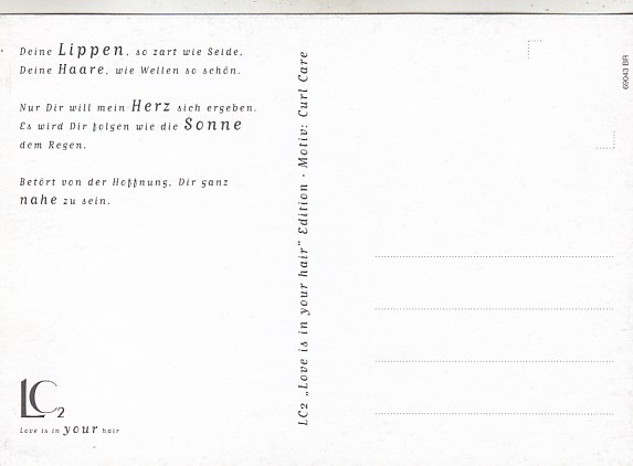 Werbung Reklame LC Love is in your hair Frauen Erotik