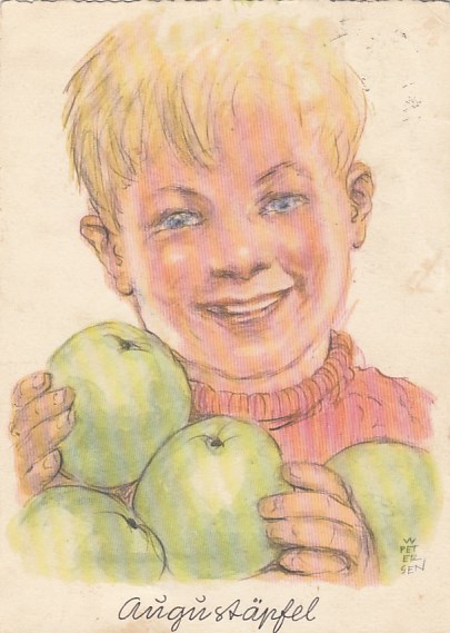 Werbung Reklame Augustäpfel Künstlerkarte Petersen Elmshorn