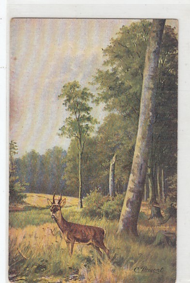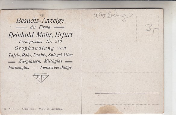 Werbung Reklame Firma Reinhold Mohr Erfurt Künstlerkarte Briesent Jagd