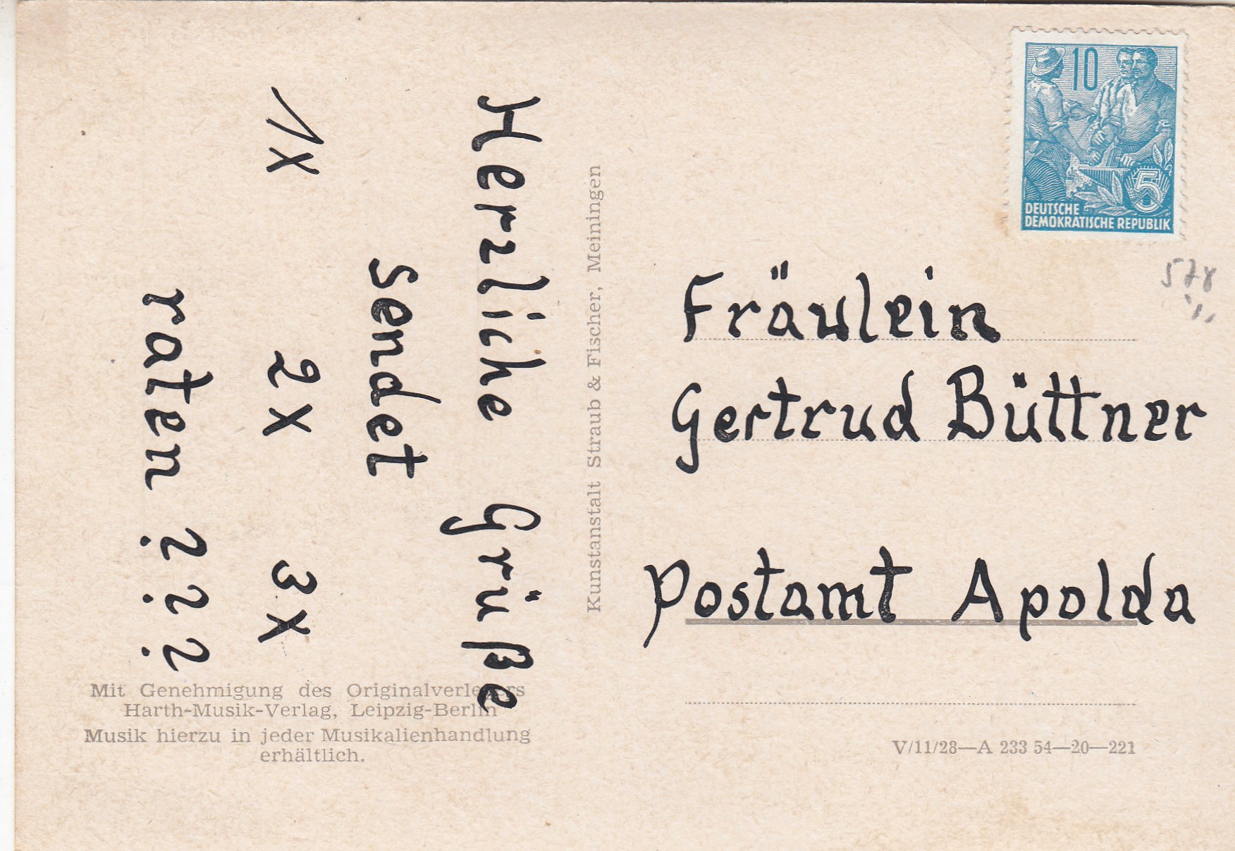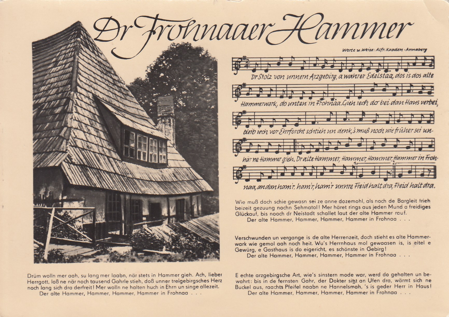 Liedkarten Musik mit Noten Annaberg-Buchholz Frohnaaer Hammer