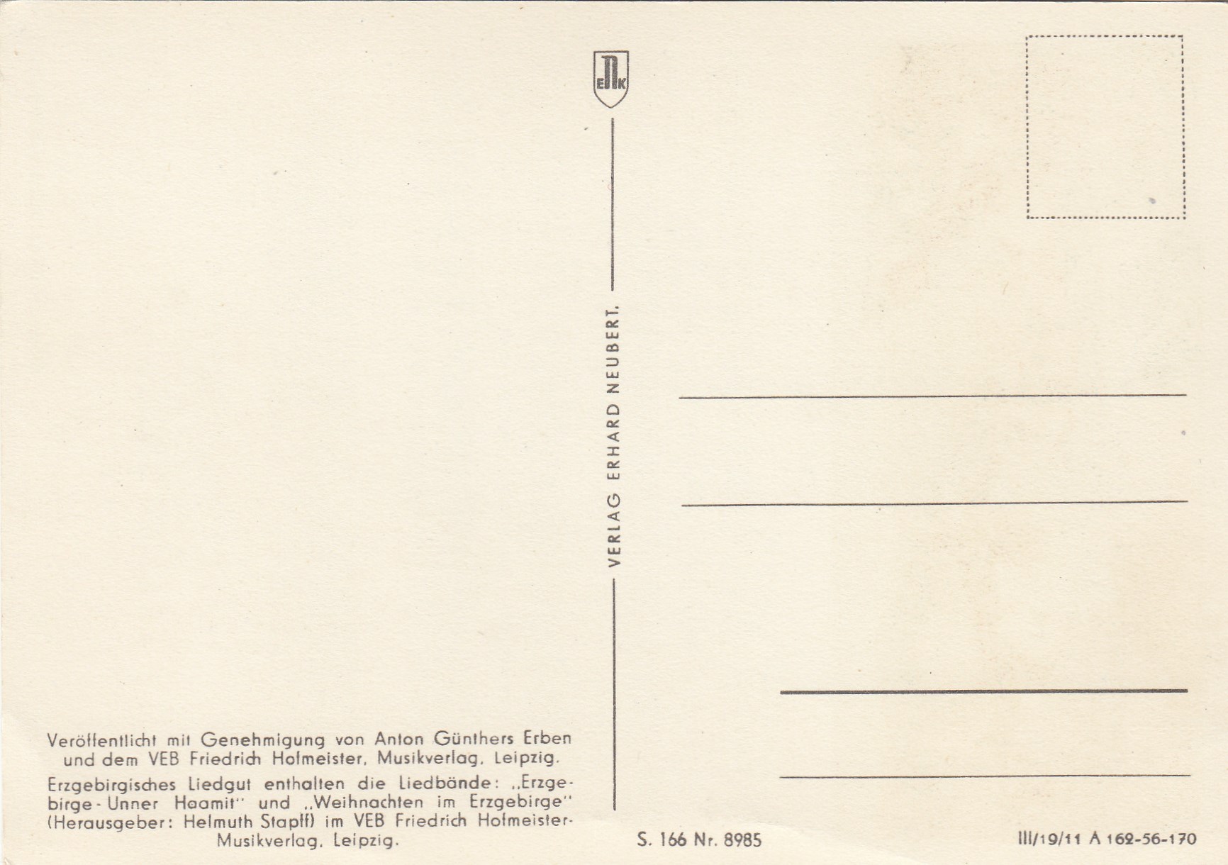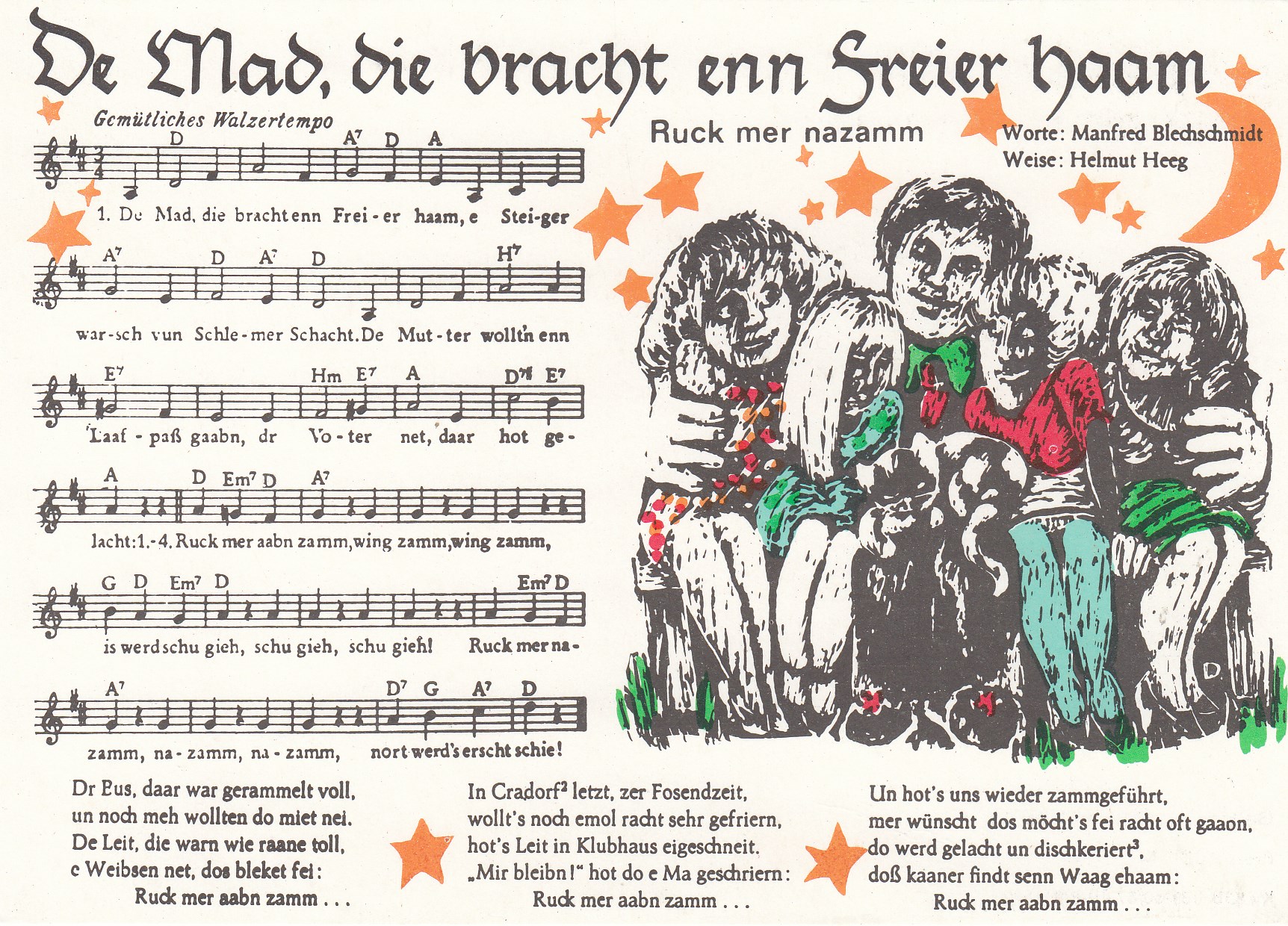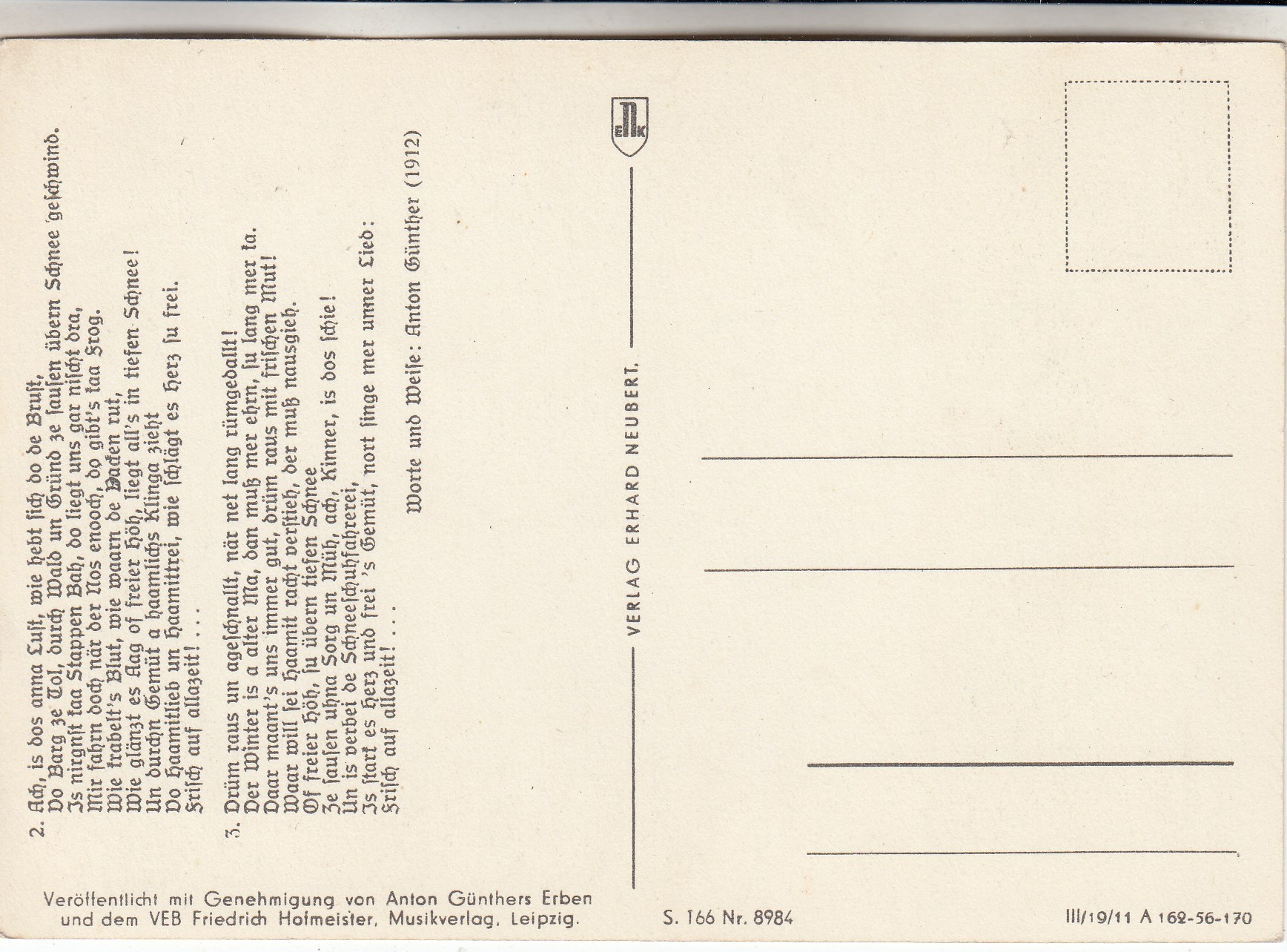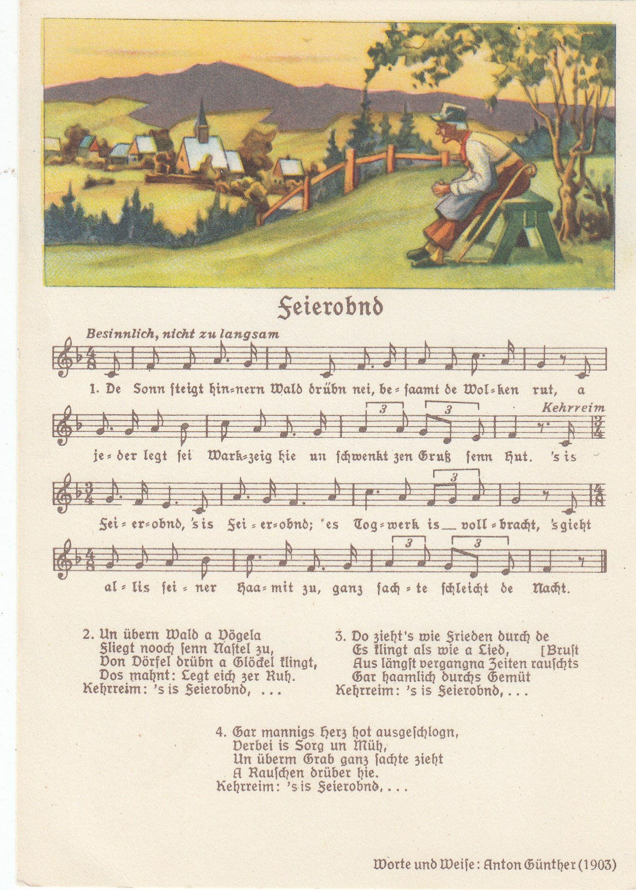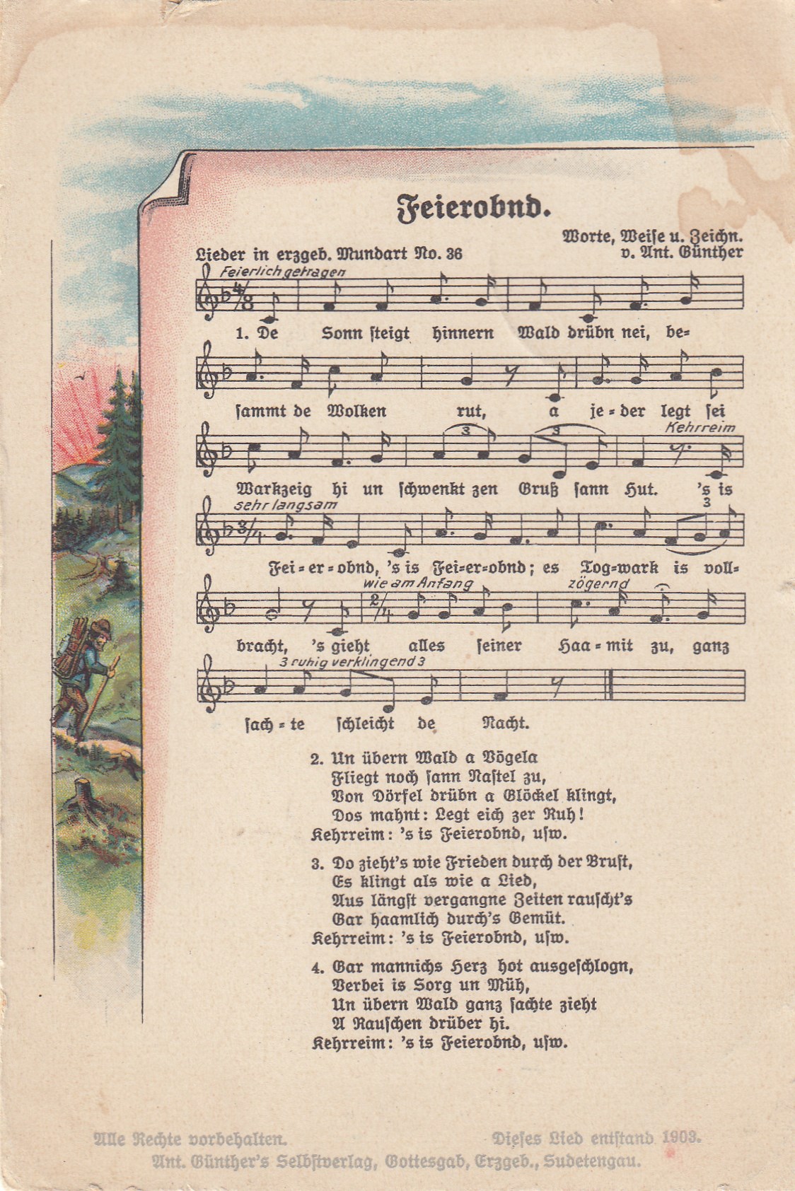 Liedkarten Musik mit Noten Erzgebirge Anton Günther Feierobnd