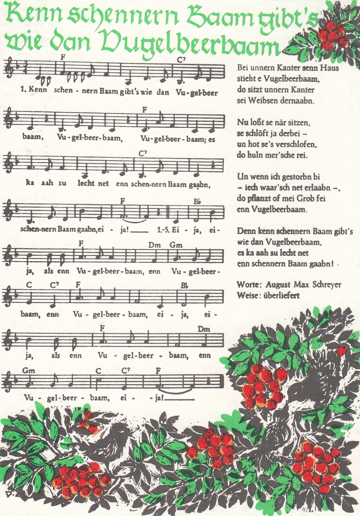 Liedkarten Musik Auf der Oberhofer Höh