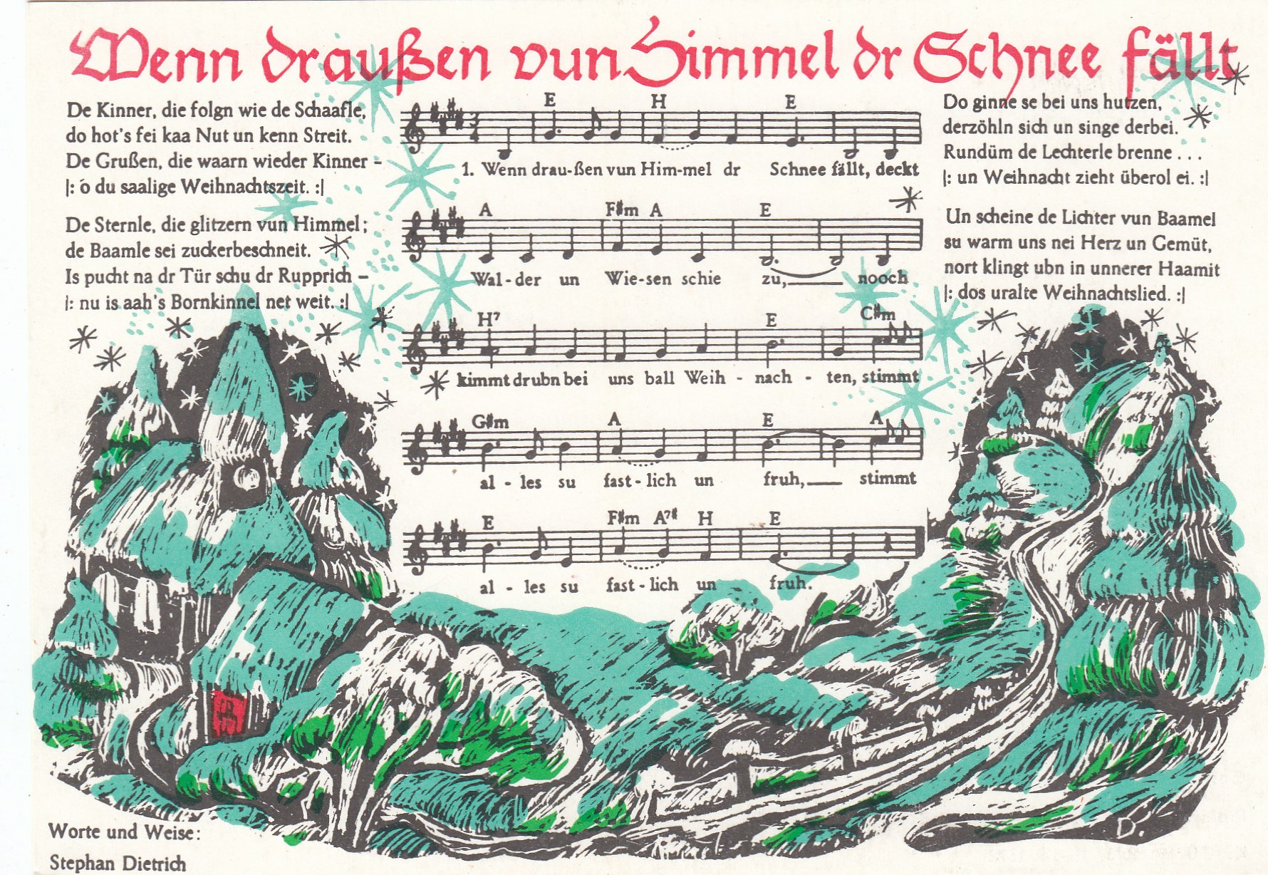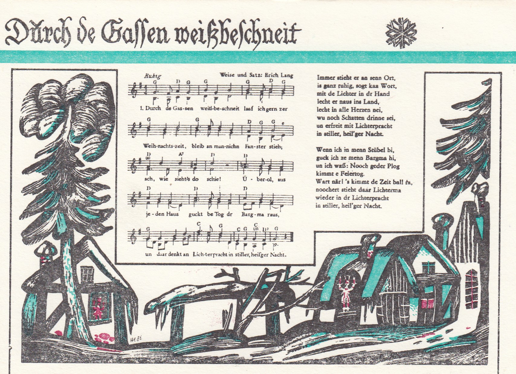Liedkarten Musik mit Noten erzgebirgischen Folklore Weihnachten