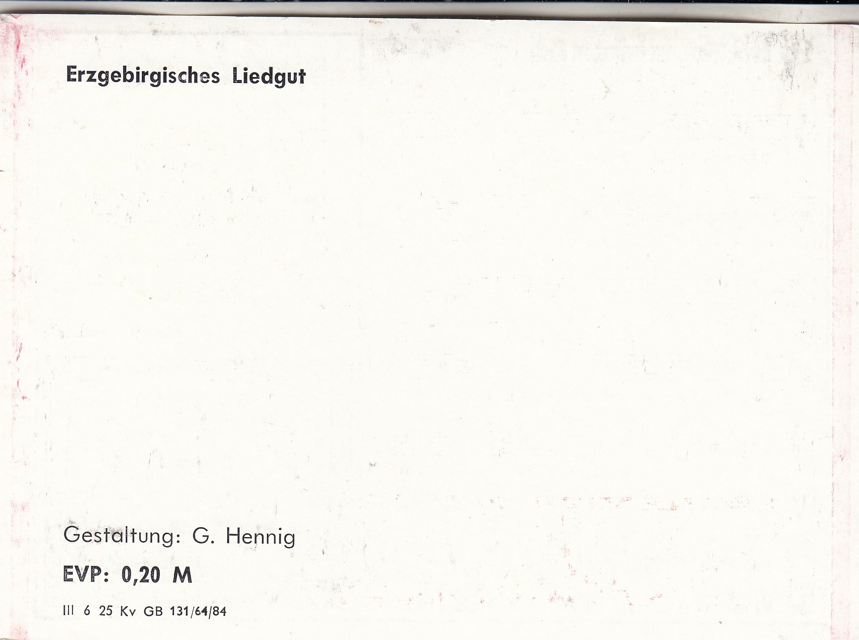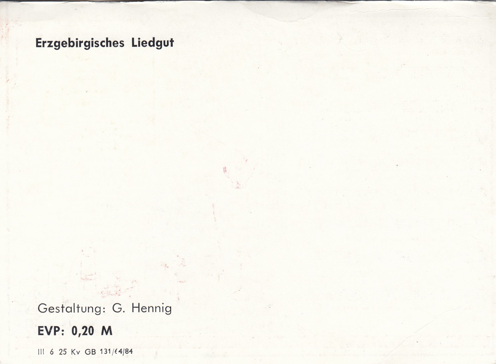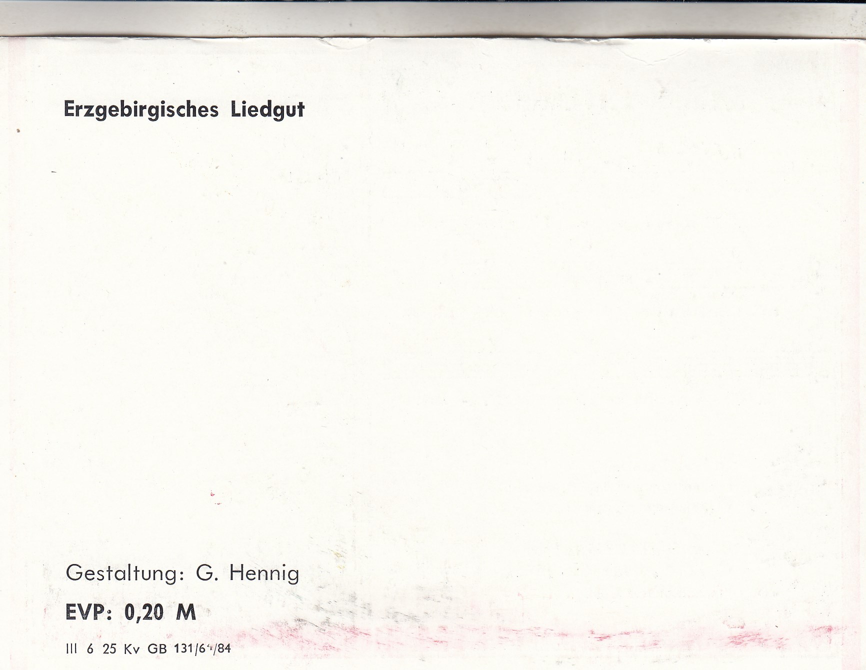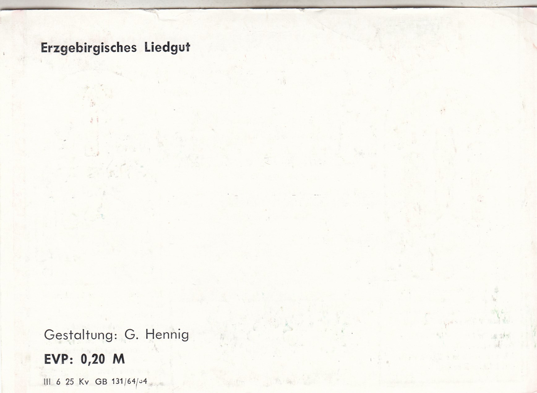 Liedkarten Musik mit Noten erzgebirgischen Folklore