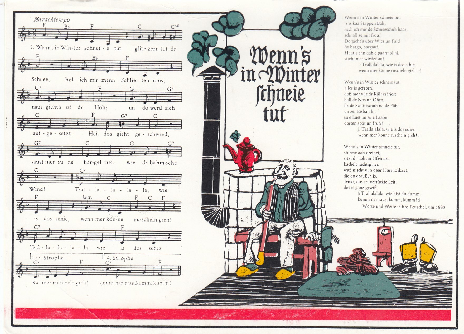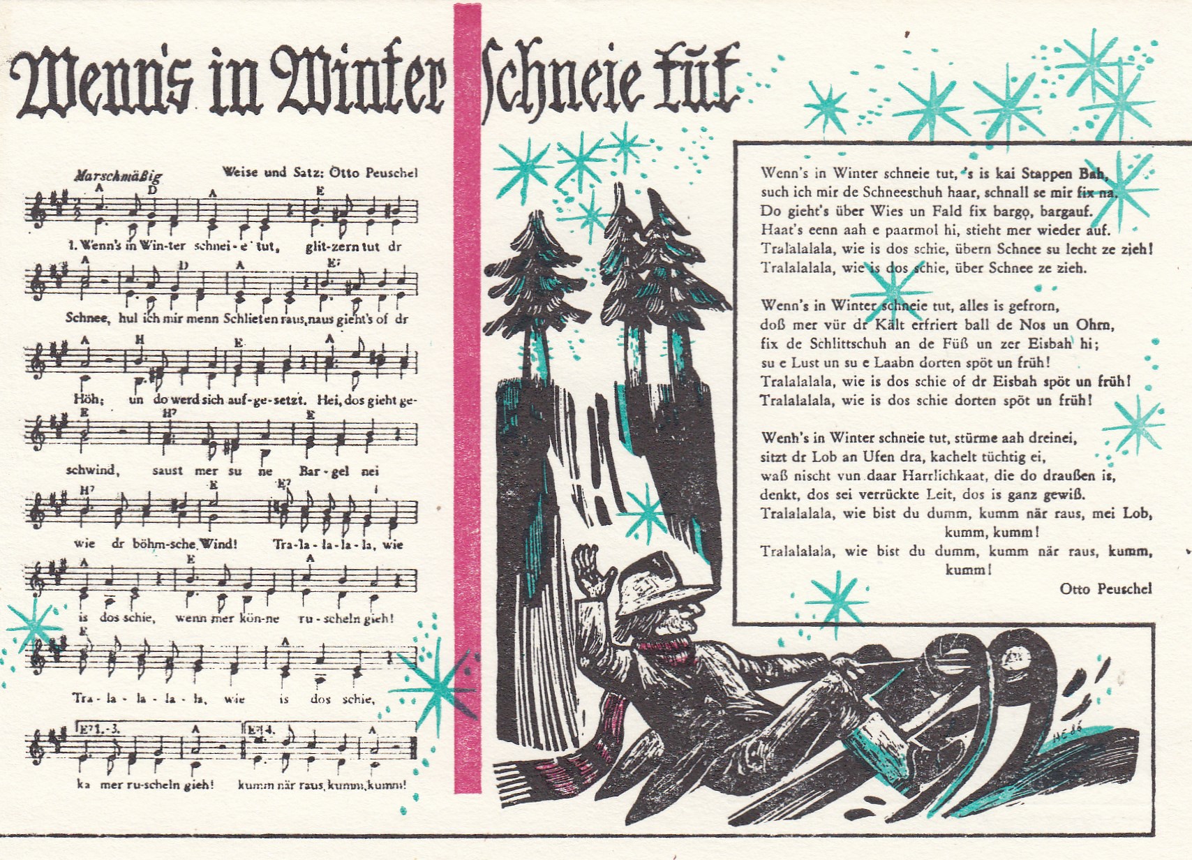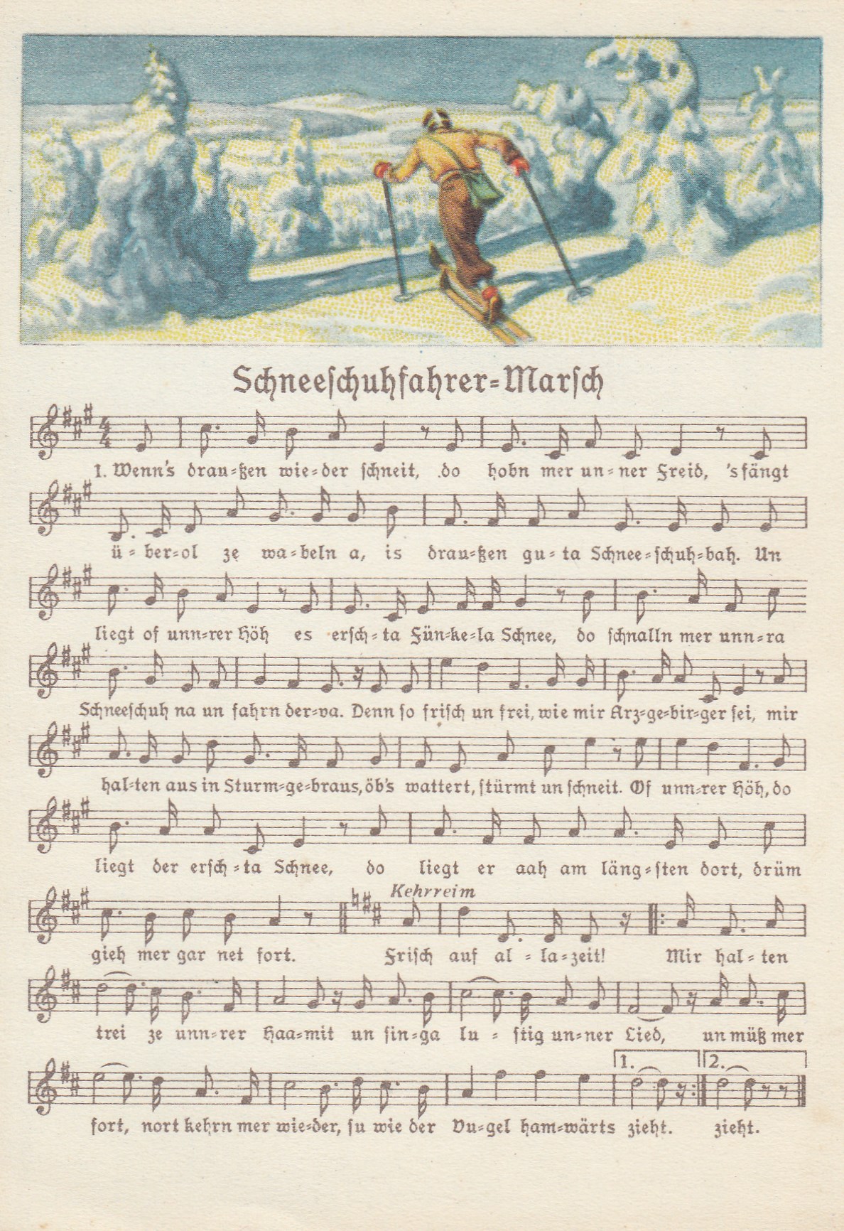 Liedkarten Musik mit Noten Erzgebirge Schneeschuhfahrer-Marsch
