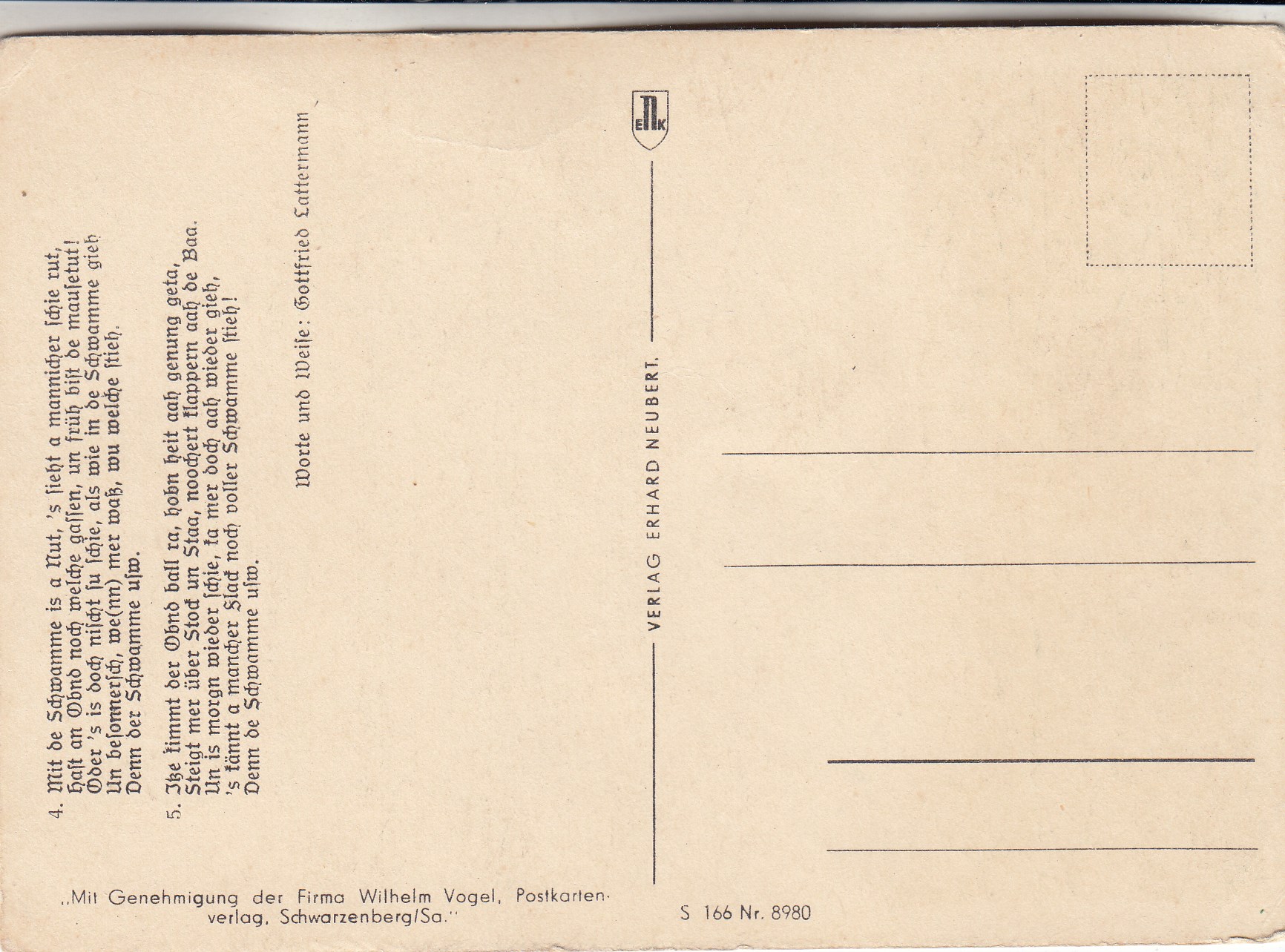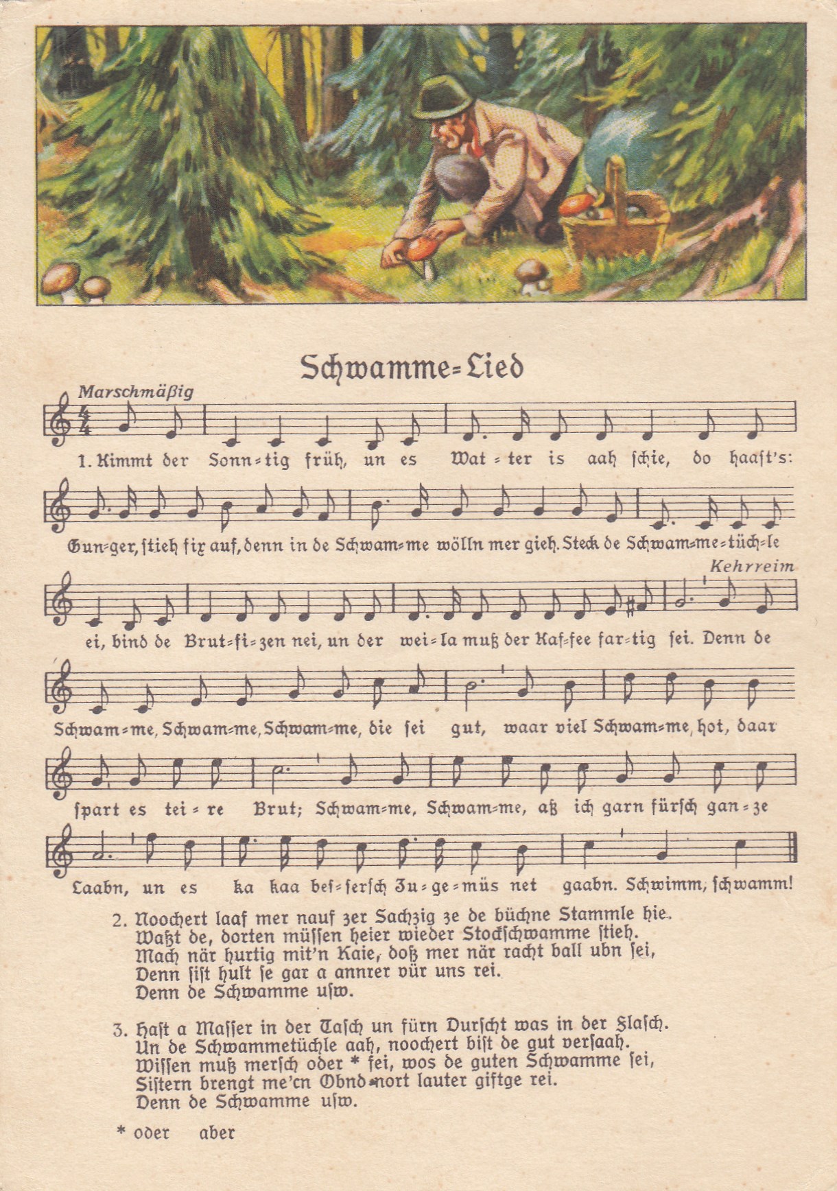 Liedkarten Musik mit Noten Erzgebirge Schwamme Lied Pilze , Gottfried Lattermann