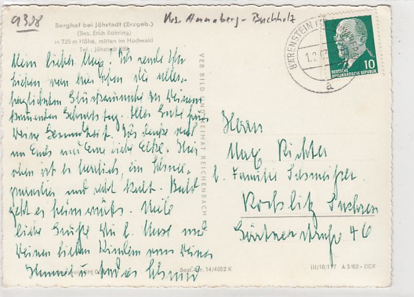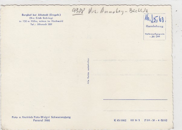 Jöhstadt im Erzgebirge Berghof Erich Bohring 1963