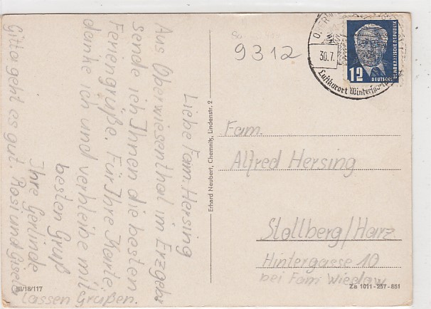 Gemeinde Sehmatal OT Neudorf in Sachsen Erzgebirge 1957