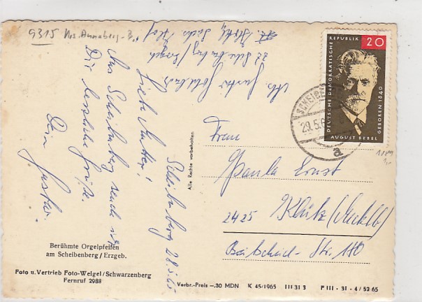 Scheibenberg im Erzgebirge Orgelpfeifen 1965