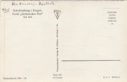 Scheibenberg im Erzgebirge Hotel Sächsischer Hof 1962