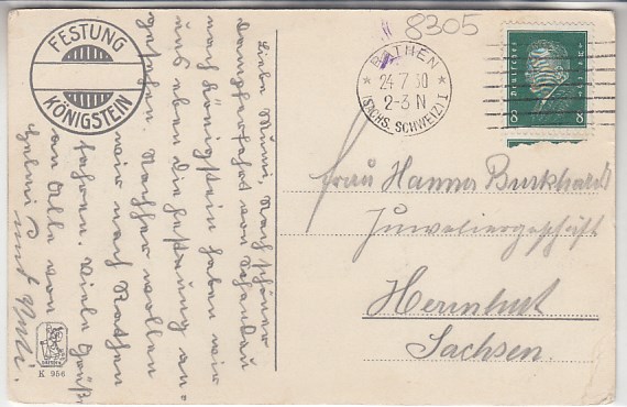 Glashütte in Sachsen Sonderstempel Feinmechanik Uhren Rechenmaschinen 1938