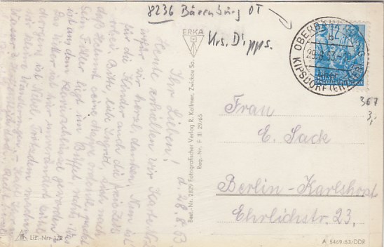 Bärenfels im Erzgebirge OT Oberbärenburg 1953
