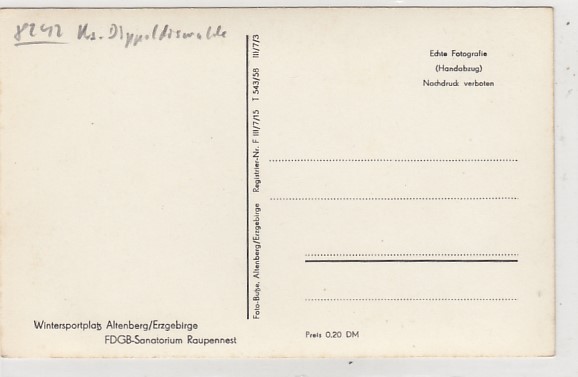 Geising im Osterzgebirge Ferienheim Senftenberg 1977