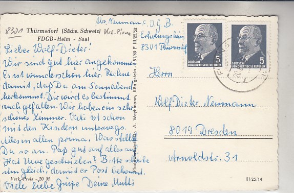 Bärenfels im Erzgebirge OT Oberbärenburg Ferienheim Fernmeldeamt Dresden 1963