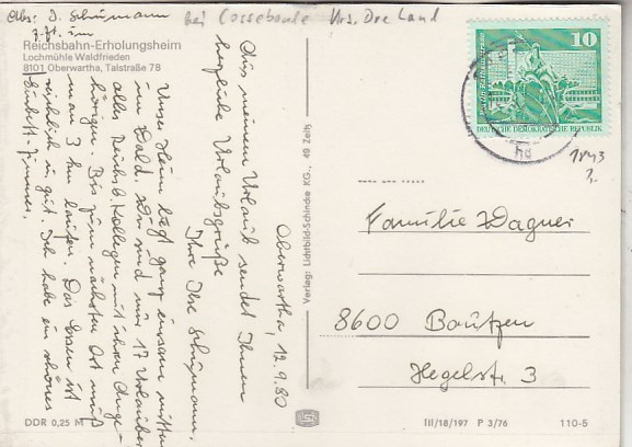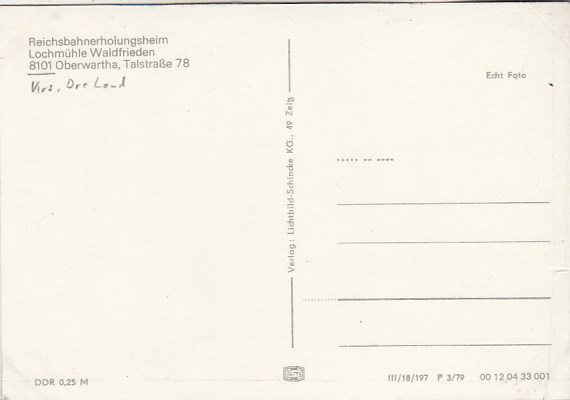 Oberwartha Reichsbahnerholungsheim Lochmühle Waldfrieden 1976