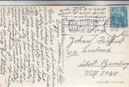 Leipzig Anlaß AK Friedensmesse wiederaufbau Künstlerkarte 1946