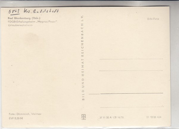 Bad Blankenburg in Thüringen FDGB-Heim 1976
