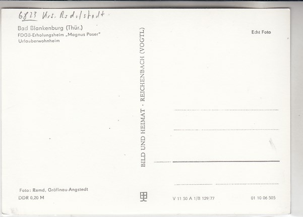 Bad Blankenburg in Thüringen FDGB-Heim 1977