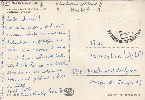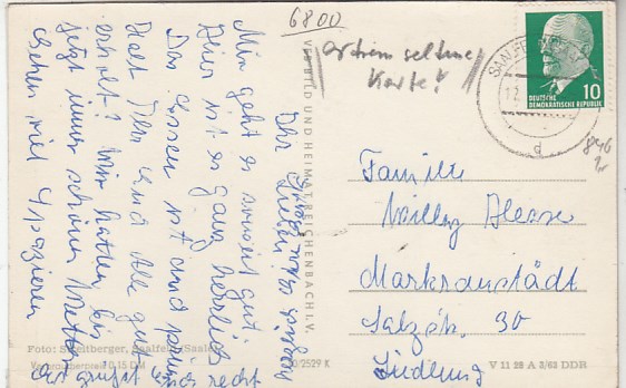 Burkersdorf in Thüringen Landpoststempel über Rudolstadt 1961